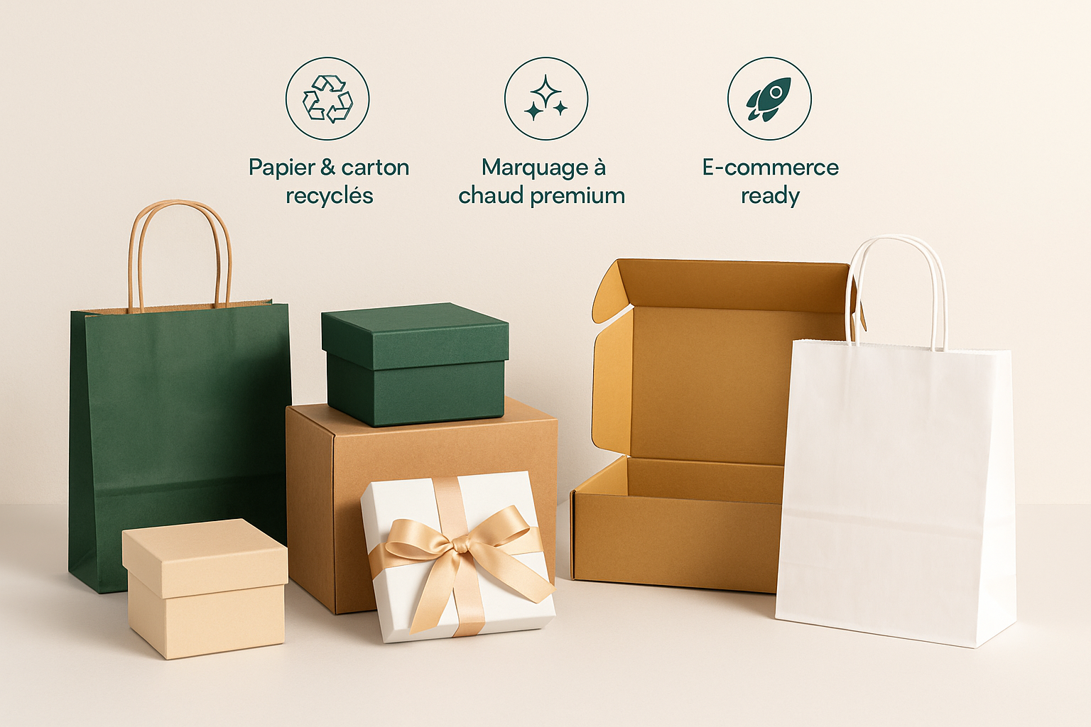 E-commerce : boîtes d’expédition solides et esthétiques, adaptées au transport.